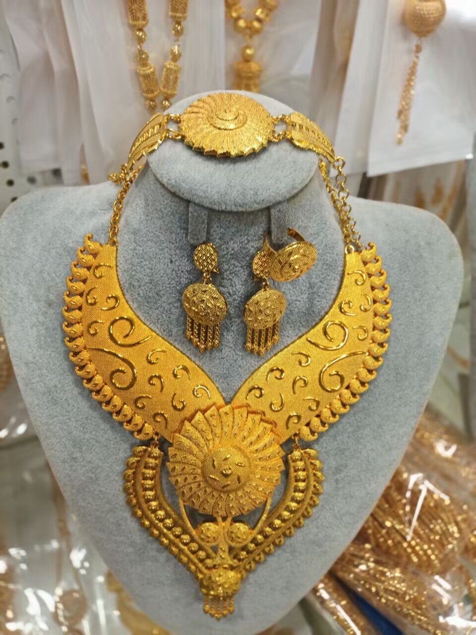 Wedding jewelry in Angola is far more than an accessory—it’s a symbol of love, prosperity, and cultural identity. For generations, Angolan brides have adorned themselves with gold pieces that honor their roots, while modern couples increasingly seek designs that balance tradition with contemporary elegance. The Angola Luxury Wedding Jewelry Set—an 18K gold-plated necklace, earrings, bracelet, and ring ensemble—answers this need, curating a collection that feels both timeless and deeply personal to Angolan heritage.