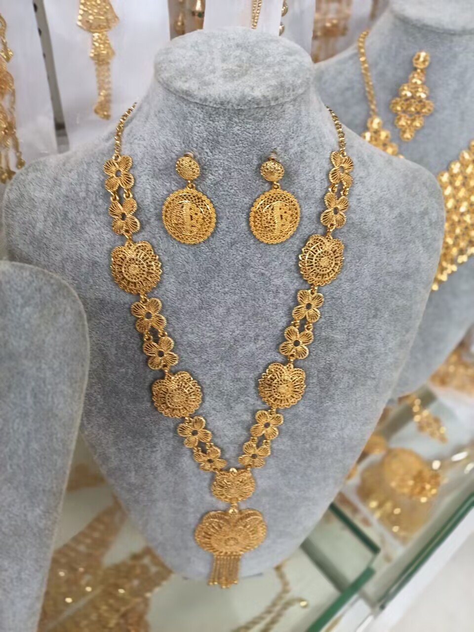 2. **Handcrafted Intricacy**: Most sets use generational techniques—filigree (delicate wirework), granulation (tiny gold beads), and repoussé (hammered relief). These details can’t be replicated by mass production.